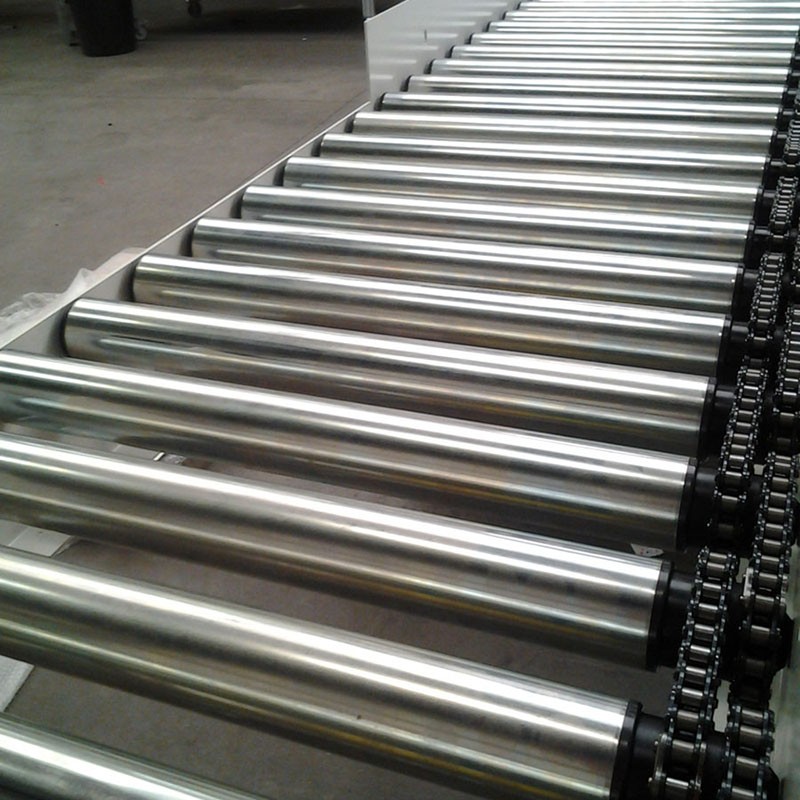 Băng tải con lăn là 1 tập hợp gồm nhiều con lăn nhỏ được sắp xếp với nhau theo một khoảng cách song song không đổi. Có động cơ truyền động giúp các con lăn quay và đưa vật di chuyển. Chúng được nâng đỡ bởi các trụ sắt có thiết kế chịu lực cao.