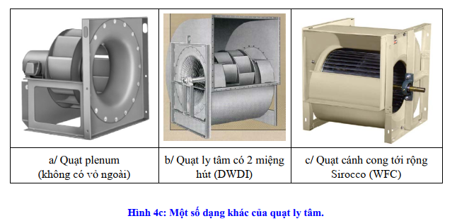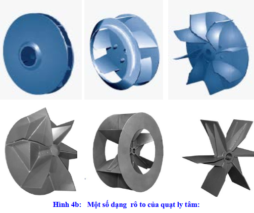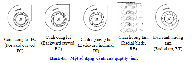 Nhằm đáp ứng cho nhiều công dụng khác nhau, quạt ly tâm có nhiều dạng cánh cho roto được thể hiện qua hình sau: